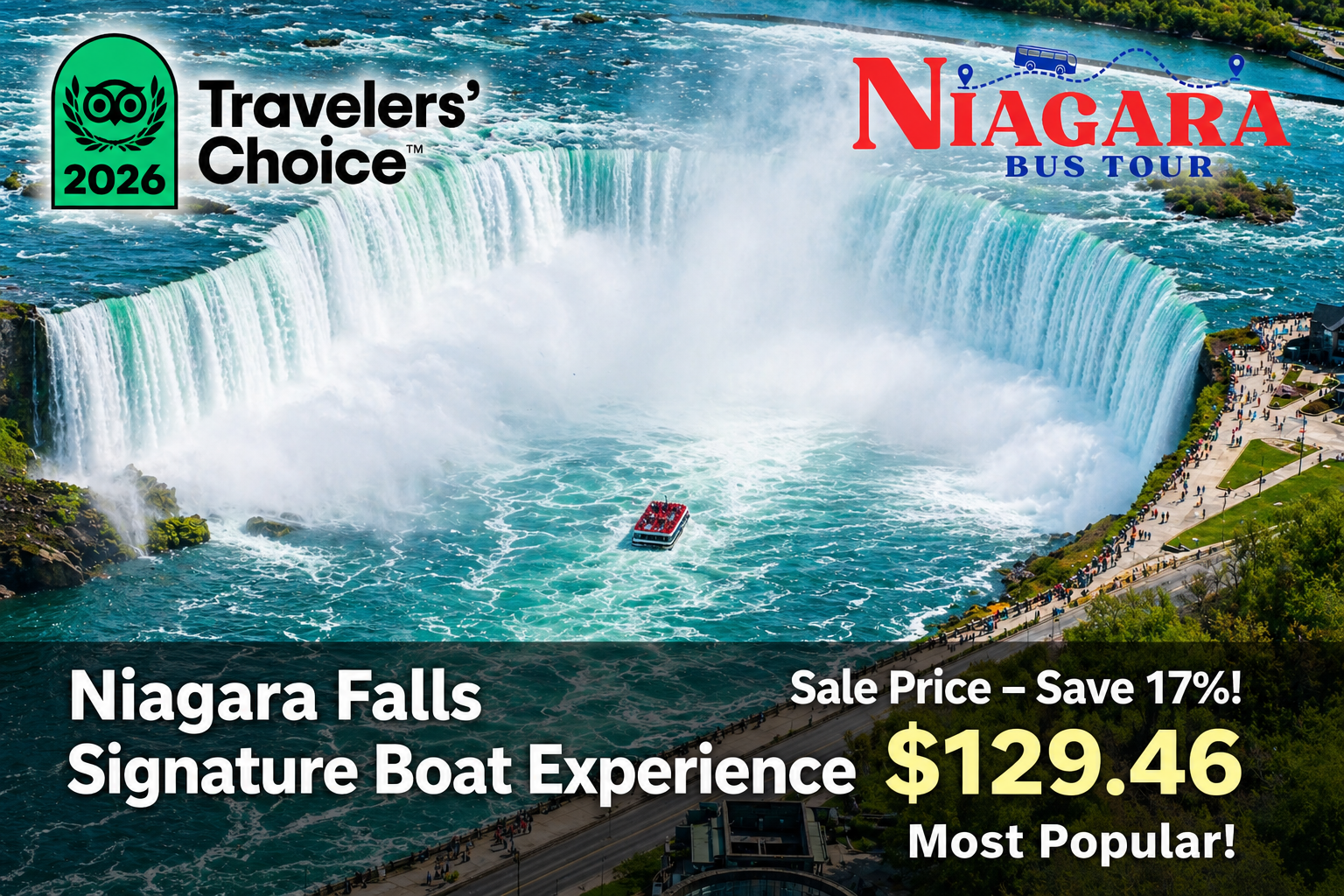 Experience the most iconic Niagara Falls attractions in Canada in one unforgettable day. From the power of the Falls at water level to breathtaking views from above, these attractions show Niagara from every angle. Explore the top experiences below and discover how our guided tours help you enjoy them comfortably, easily, and without stress.